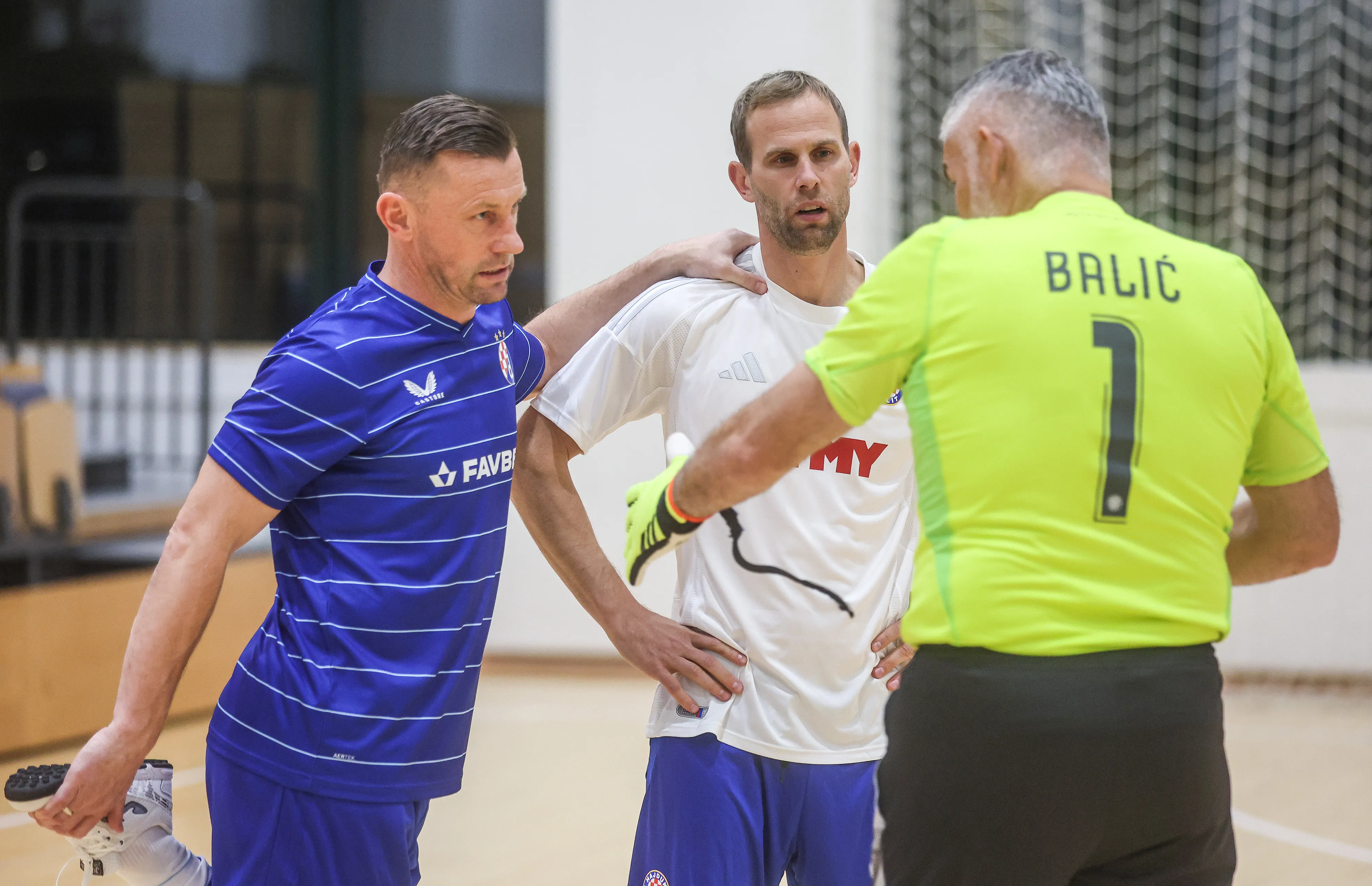 Ideja je uistinu pohvalna, tu se i nema što dodati. Veterani, bivše zvijezde Dinama i Hajduka, dan uoči Derbija, humanitarni karakter. I onda, jasno, zajedničko druženje. Mali nogomet, pet plus jedan, na parketu centra Agram, tribine natiskane, a na parketu baš jaka imena. Dinamo, ha, složit će se svi, ipak zvučnijeg popisa: Olić, Vlaović, Šokota, Etto, Dario Šimić, Tomas, Tokić, Krstanović, Abramović, Shala, Mujčin, Lončarić... S druge strane Bijeli predvođeni Vladom Balićem, zatim Strinić, Vejić, Rodić, Biliškov, Mladinić, Kozniku, Jozinović... I borbenih 0-0, bez golova uz dosta šansi i golmanskih bravura, ali uz zajedničku ideju; jesmo veterani, jest revijalka, ali popusta nema!