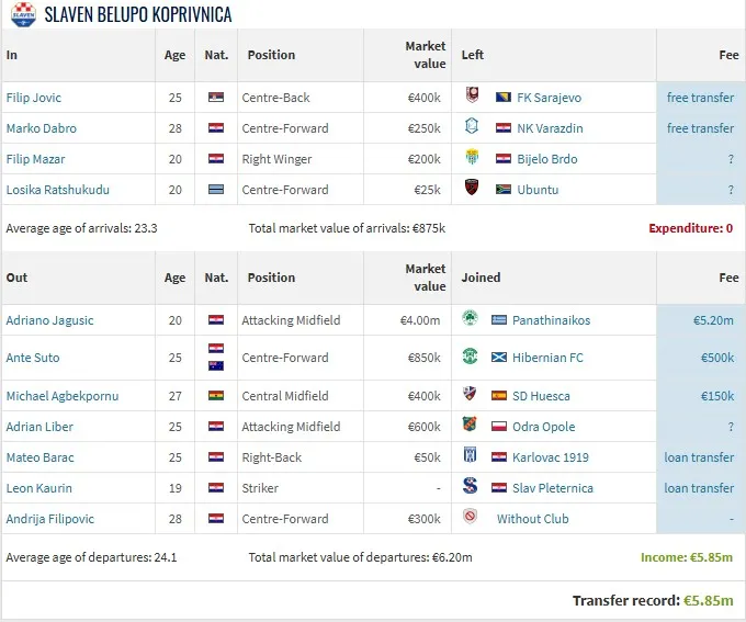 Epilog tih mlađih bio je Salim Lawal, koji je u najvećem izlaznom transferu u povijesti kluba potpisao za Viktoriju iz Plzena. Taj je posao oda sjajnom poslu Saše Bjelanovića, koji je posložio kadar po svojoj mjeri, ima autonomiju u radu i sve je došlo na naplatu. Udarac je i odlazak Ville Koskija (Alaves), a tu je i drugi najveći ulazni transfer, Danijel Djuric, koji je posuđen Železničaru iz Pančeva.