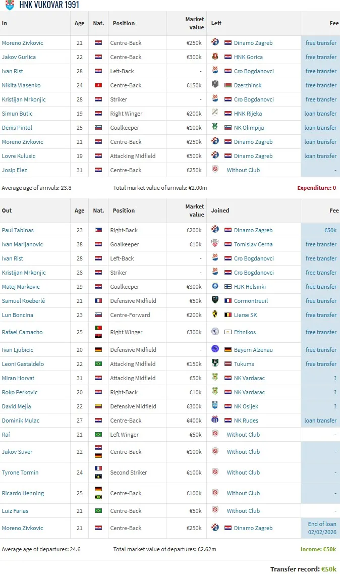 Lista odlazaka puno je duža. Tu su Rafael Camacho (Ethnikos); Bončina (Lierse), Gastaldelo (Tukums), Mejia (Osijek)... Ideja je poprilično jasna. Uz mladiće, kao i neke unutarnje rezerve, poput Nike Pajvančića, koji je ostavio dobar dojam iako je uzorak malen, Čabraja ima igrače koji će ga slušati i pratiti. S obzirom na to da je s Lokomotivom dugo plesao i nikad otplesao prema drugom rangu, s Vukovarom se nada istomu.