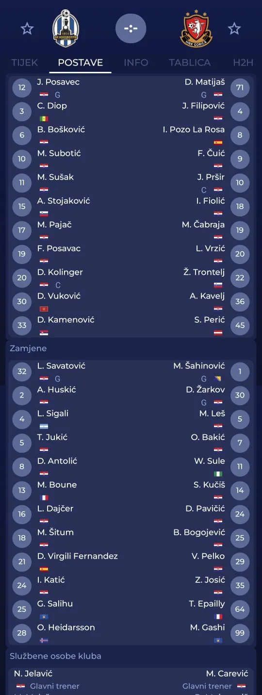 Gorica (3-4-2-1): Matijaš – Filipović, Perić, Čabraja – Trontelj, Pozo, Kavelj, Vrzić – Pršir, Fiolić – Čuić. Trener: Mario Carević.