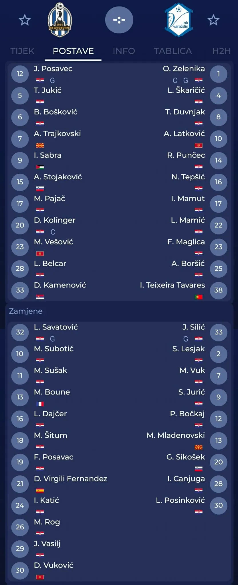 Varaždin (4-2-3-1): Zelenika – Škaričić, Punčec, Tepšić, Boršić – Duvnjak, Maglica – Latković, Mamić, Tavares – Mamut. Trener: Nikola Šafarić.