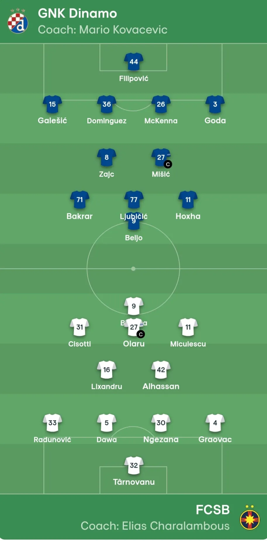 SASTAVI (Dinamo - FCSB), Goda zauzeo lijevi bok, ostatak očekivan