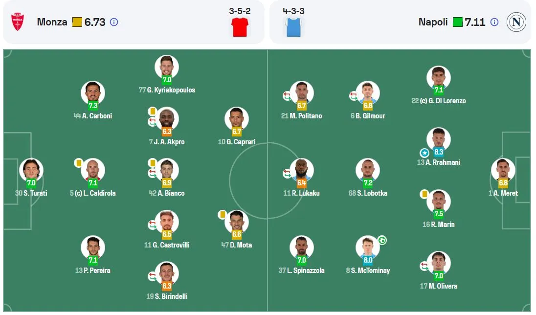 Protiv otpisane Monze Napoli je odigrao vrlo slabu utakmicu, a do pobjede je stigao golom McTominaya (72) čiji je udarac glavom završio u mreži prvenstveno zbog loše reakcije domaćeg vratara Turatija koji je promašio loptu prilikom istrčavanja.