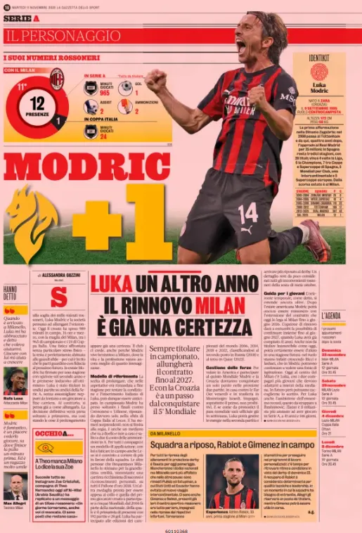 Nakon dvotjedne reprezentativne stanke, fokus talijanske sportske javnosti bit će usmjeren na San Siro, gdje će dva velika milanska rivala, odmjeriti snage. U toj utakmici će najvažnije poteze Milan vući mladić od 40 godina, i s brojem 14 na leđima - Luka Modrić. Osim što će, uči nas iskustvo, biti jedan od najvažnijih igrača Rossonera u velikom derbiju, kapetan hrvatske reprezentacije će proslaviti i jedan jubilej. Naime, odigra li barem 35 minuta, a to ne bi trebalo biti upitno, onda će Luka u 11 uvodnih utakmica odigrati 100 minuta u Serie A!