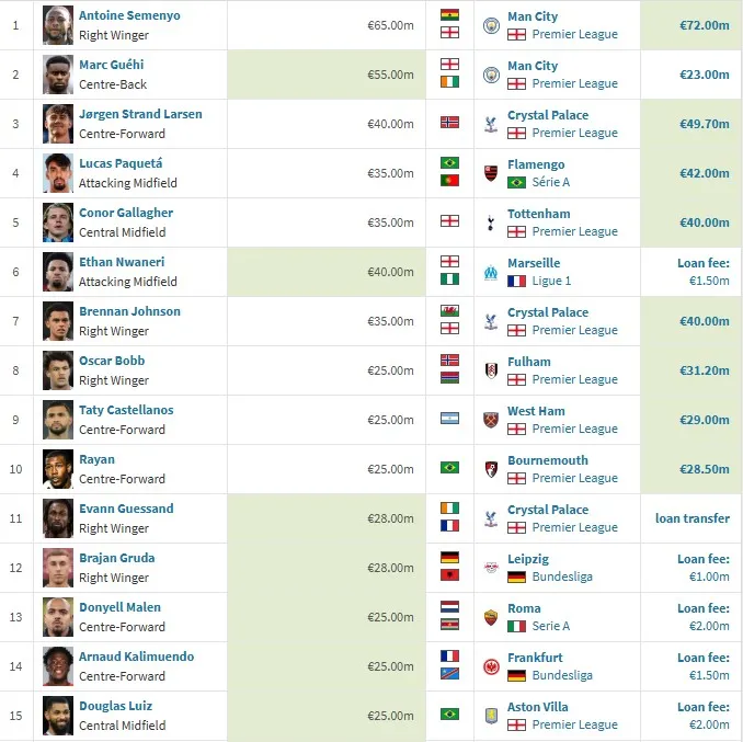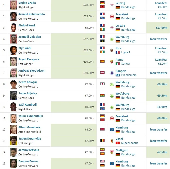 Najozbiljnije je poslovao Leipzig. Brajan Gruda punio je medijske stupce kada je u intervjuu otvoreno rekao da želi igrati za neki od vrhunskih klubova, spomenuvši Bayern, Real Madrid, Barcelonu i Liverpool. Gruda ipak nije završio u jednom od tih velikana, već je na leđa dobio broj 10 bivšeg kluba Olma i Gvardiola. S obzirom na to da je Assan Ouédraogo dugoročno izvan terena, Gruda će imati svoju šansu.