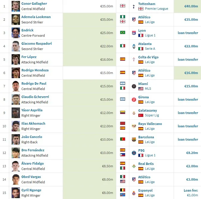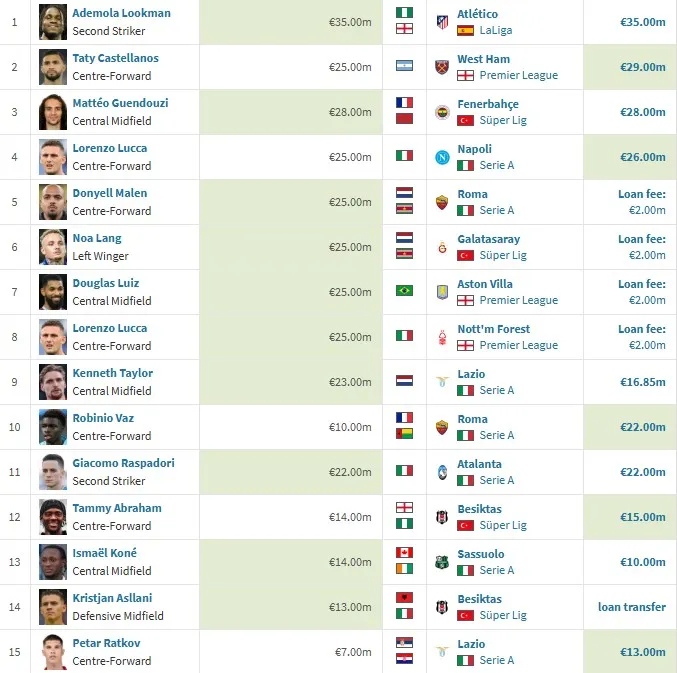 Španjolci su bili relativno mirni. Dva najveća, Real Madrid i Barcelona, nisu sudjelovali u posljednjem danu, ali zato Cholo Simeone jest. On je u najvećem transferu Pirineja na datum 2. 2. 2026. doveo Ademolu Lookmana iz Atalante, a Božica je uprihodila oko 35 milijuna eura za njegove usluge.