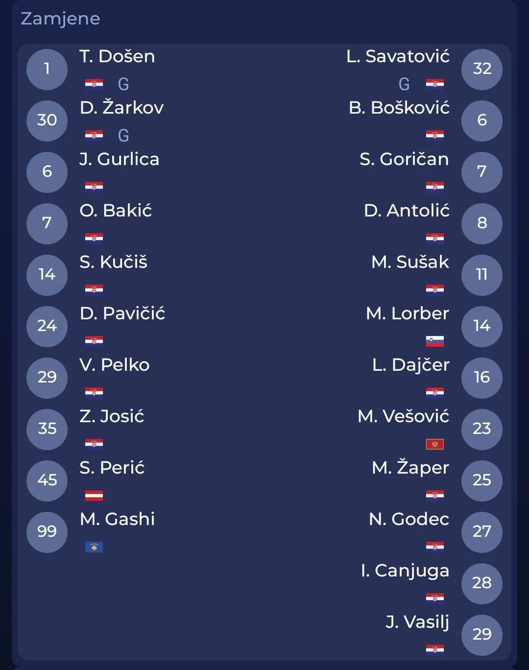 Lokomotiva (3-4-2-1): Posavec – Kolinger, Diop, Jukić – Šitum, Katić, Subotić, Leovac – Krivak, Vuković – Stojaković. Trener: Nikica Jelavić.