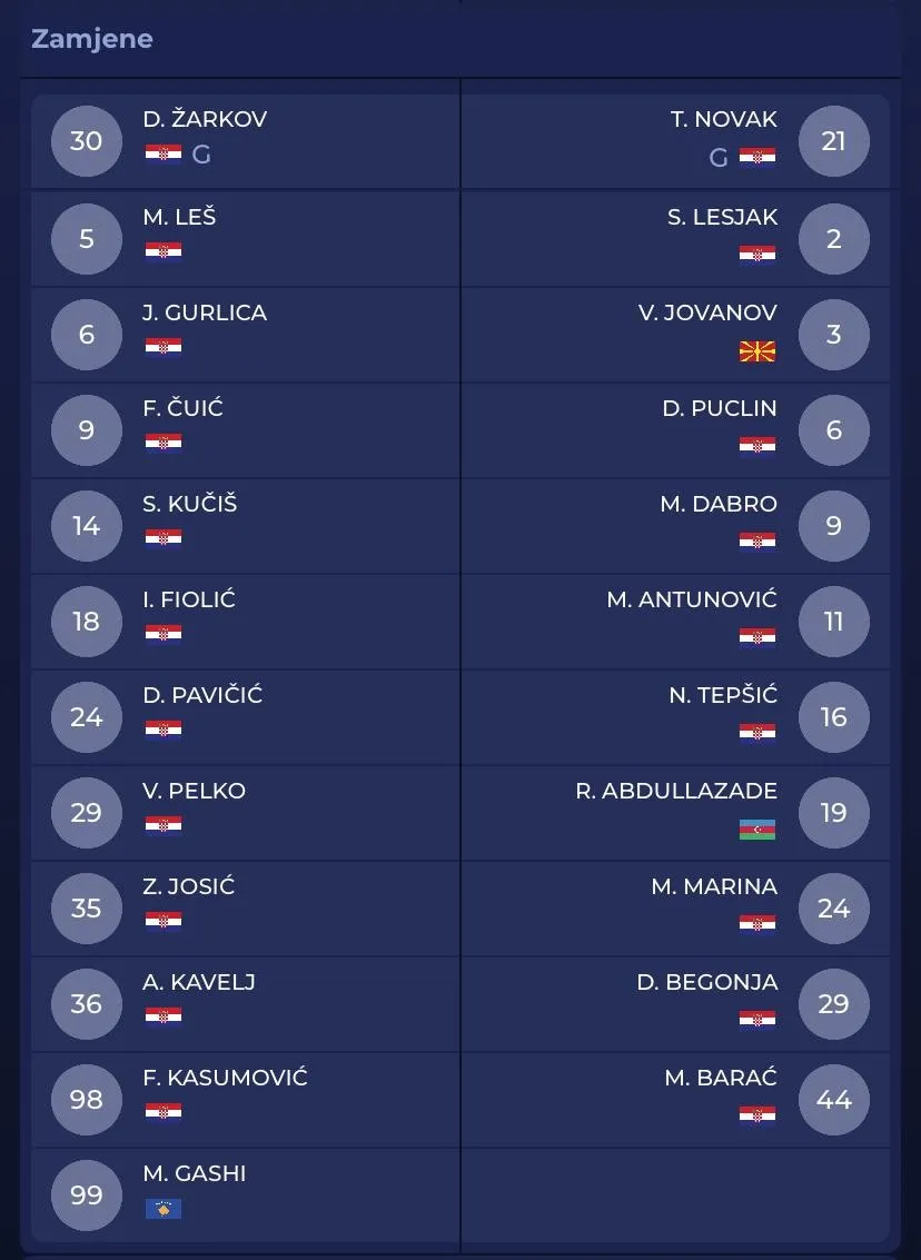 Varaždin (3-4-2-1): Zelenika - Mladenovski, Ba, Škaričić – Maglica, Duvnjak, Belcar, Boršić – Latković, Mamić - Mamut