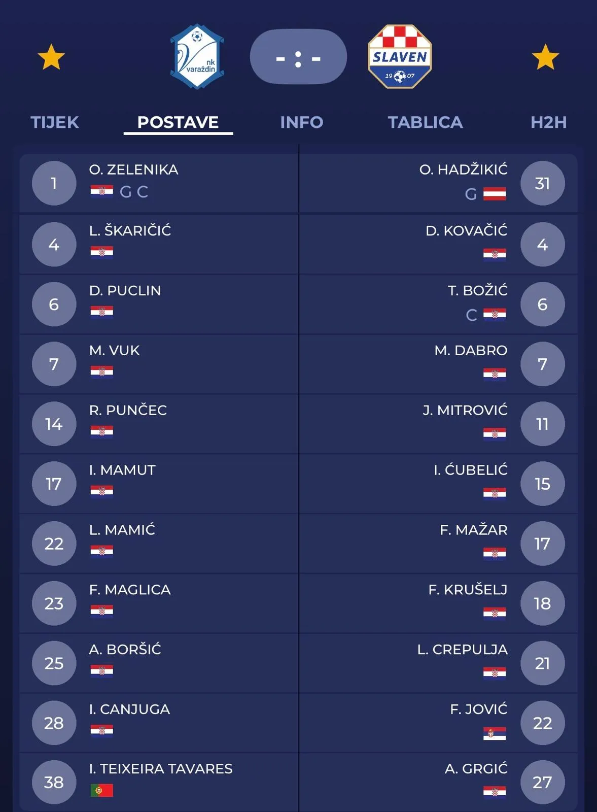 Varaždin (4-1-4-1): Zelenika – Maglica, Punčec, Škaričić, Boršić – Puclin – Vuk, Canjuga, Mamić, Tavares – Mamut.