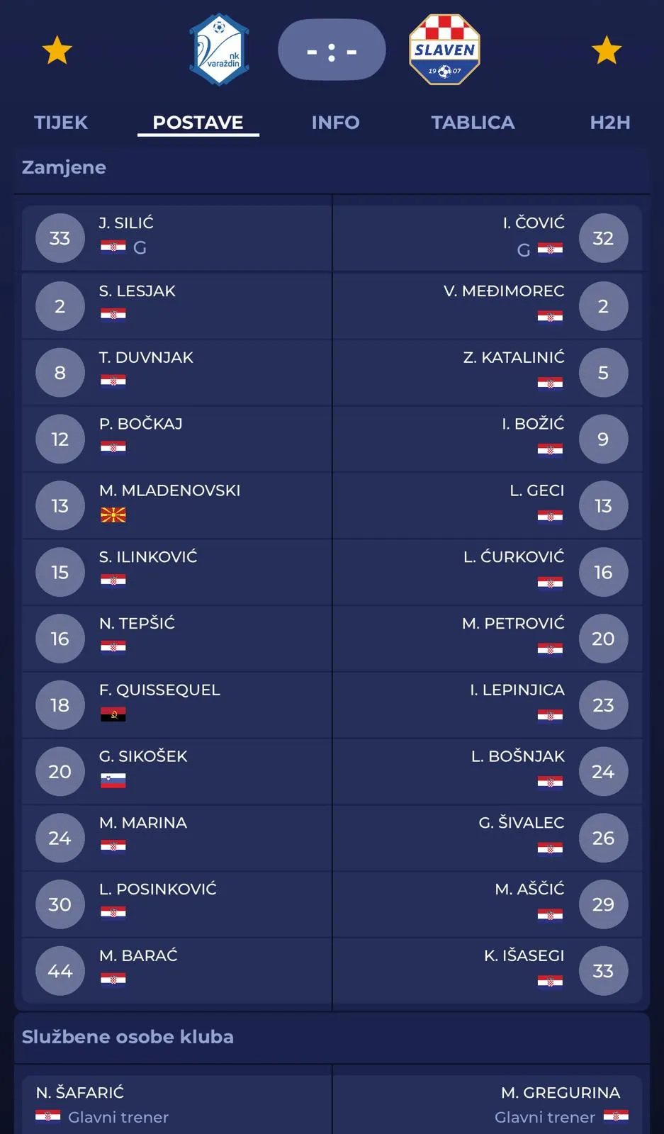 Slaven Belupo (4-3-3): Hadžikić – Krušelj, Božić, Koavčić, Jović – Ćubelić, Crepulja, Mažar – Mitrović, Dabro, Grgić.