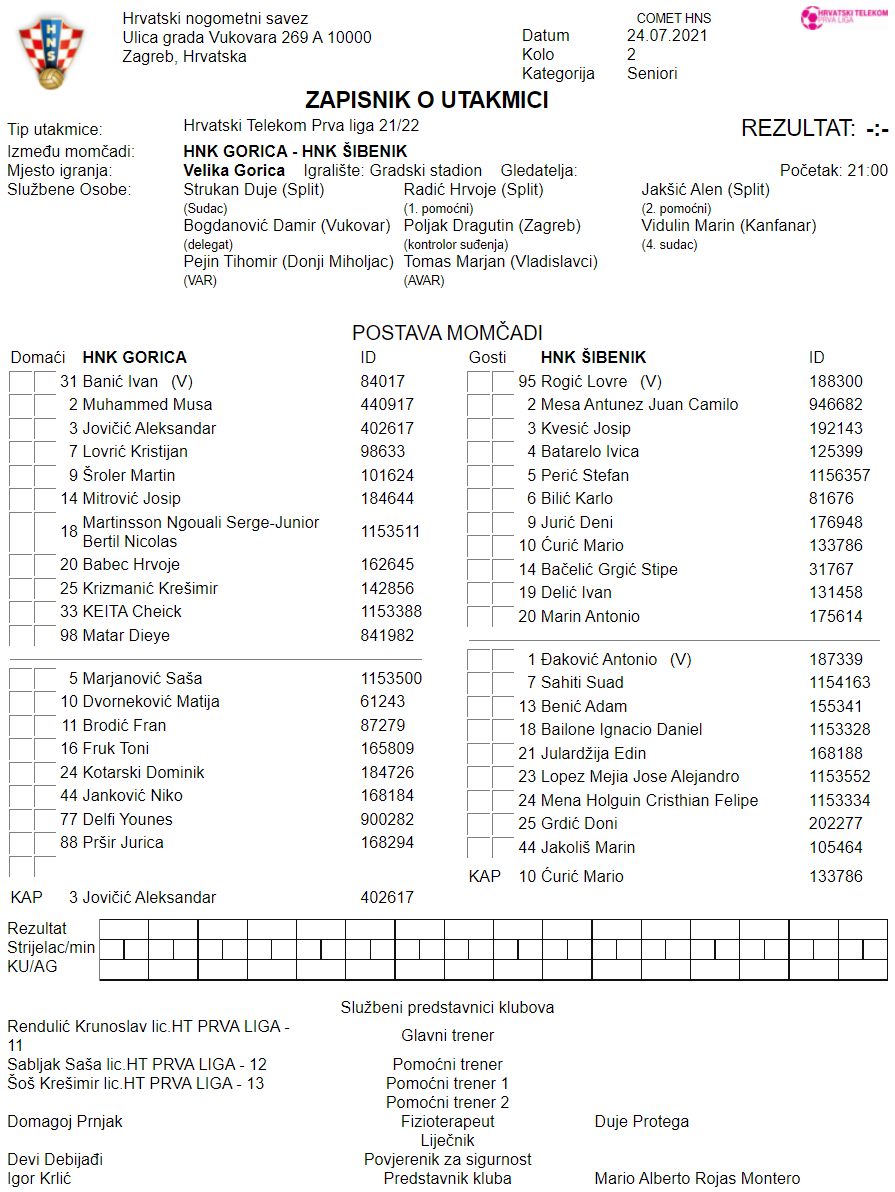 Sigurno će jedna i druga momčad u ovoj utakmici tražiti bodove, a za koga su se u prvih 11 odlučili Krunoslav Rendulić i Mario Rosas pogledajte u zapisniku.
