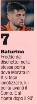 U tiskanom izdanju La Gazzette dello Sport Baturina je dobio 7 kao i igrač utakmice, vratar Coma Butez, uz opasku: