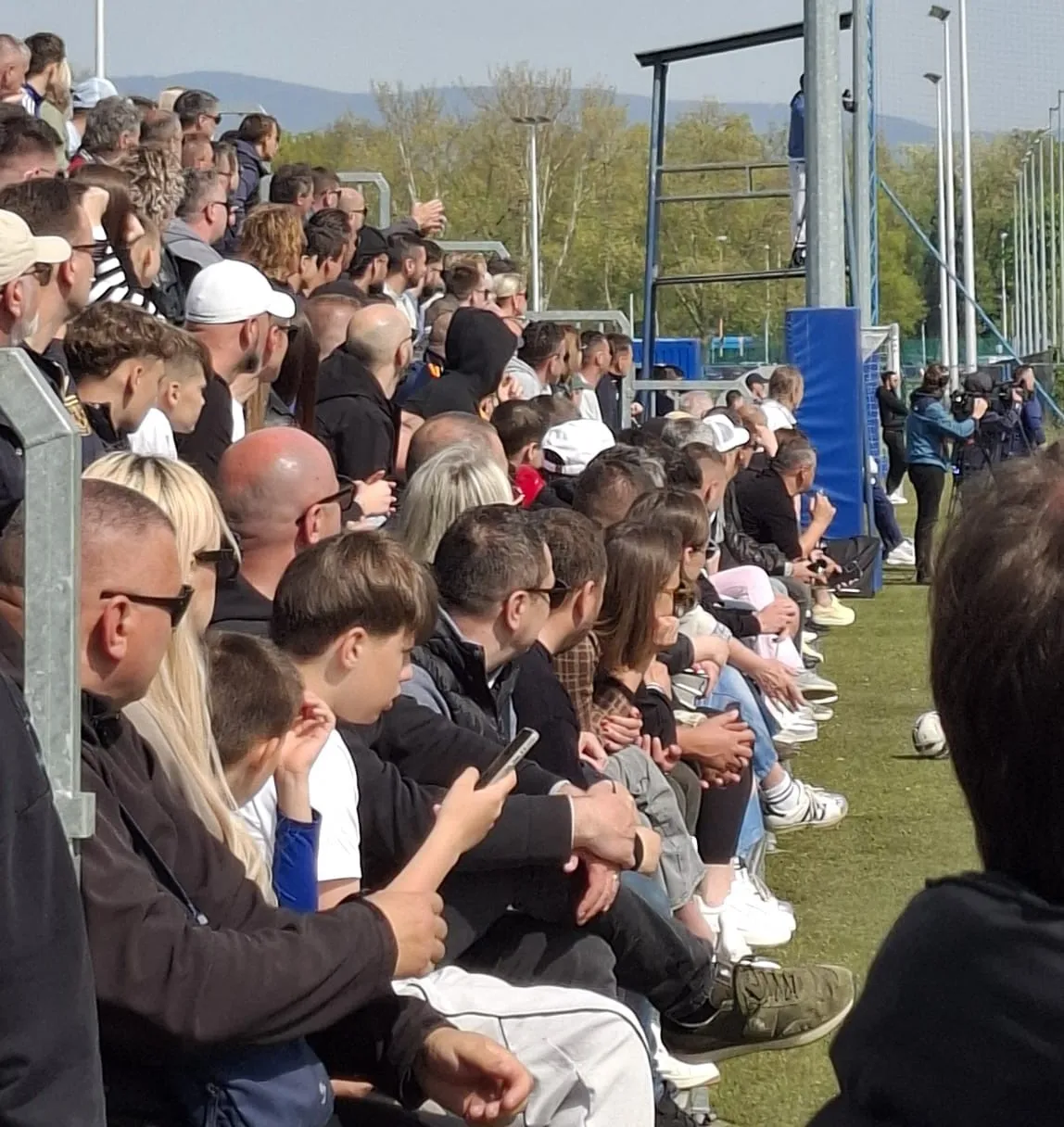 Dinamovi kadeti imaju i glasnu podršku nekoliko navijača uz ogradu pomoćnog terena u Maksimiru, navijaju i uz pomoć megafona. Rezultat je još uvijek 0-0.