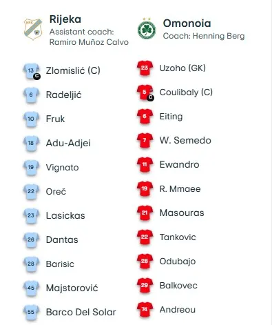 Rijeka je u zadnjem prvenstvenom kolu poražena 0-1 od Hajduka, dok je Omonia istim rezultatom izgubila od APOEL-a. Gosti će biti bez teško ozlijeđenog prvog vratara Fabiana (prijelom kralježnice), no ofenzivni dio momčadi je spreman i bit će to nadmetanje koje će teško završiti bez pogodaka.